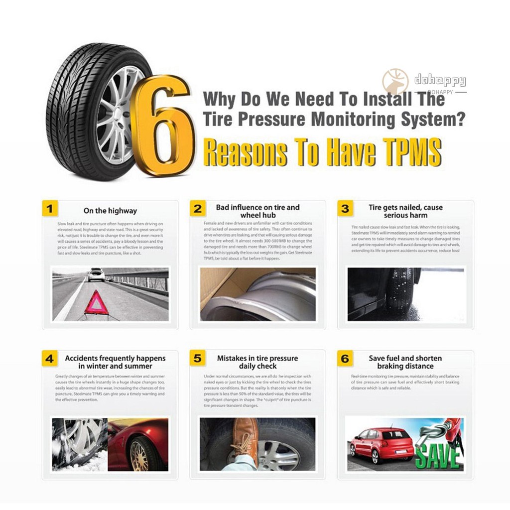 Tpms Tire Pressure Monitoring System Solar Wireless And Usb Charging Detection System With 4 Internal Sensors Shopee Indonesia
